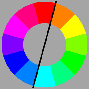 Der Farbkreis kann durch Halbieren aufgeteilt werden in einen Bereich mit warmen Farben und in einen ebensolchen mit kalten Farben.