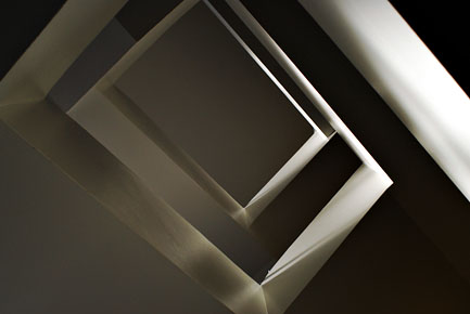 Diese Formwahrnehmung wird bei nebenstehendem Bild deutlich. Von den meisten Betrachtern wird wohl ein auf einer Spitze stehendes Rechteck wahrgenommen, obwohl diese Form materiell nichtexistent ist, die Form tritt in unserem Beispiel als Negativ-Form in Erscheinung. In der Figur-Grund-Beziehung übernimmt hier also eine virtuelle Form den Part der Figur. Auch der vereinfachende Aspekt ist zu erkennen. Notwendige ist eine gewisse Toleranz bezüglich der Parallelität der Seiten, die Winkel betragen nicht genau 90°. Trotz dieser Mängel wird die auf der Spitze stehende Form problemlos als Rechteck wahrgenommen.